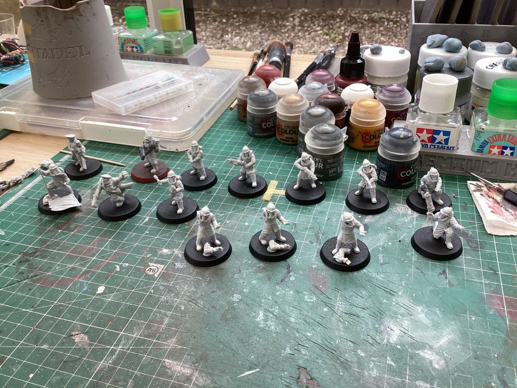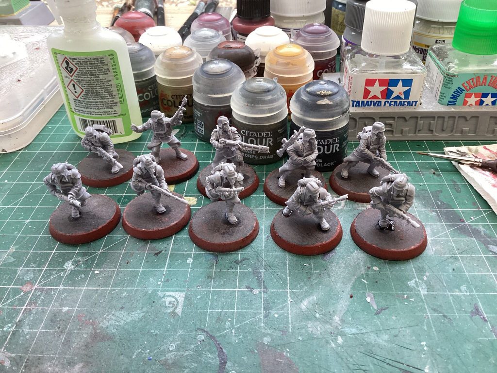 10 combat engineers, commissar & some of 5-man HQ squad (all Anvil Industries)