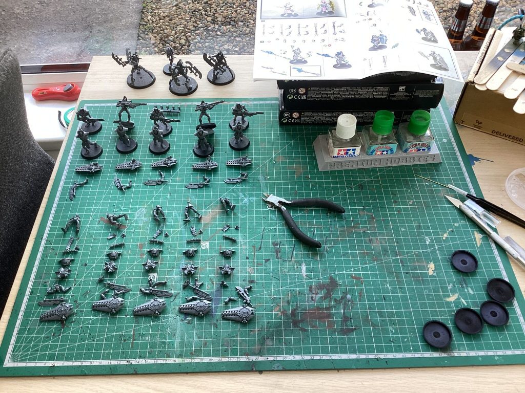 Building some Necron reinforcements. 3 x Skorpekh Destoyers + Plasmacyte (giving a total of 6), 5 x Deathmarks (snipers) and 10 x Lychguard