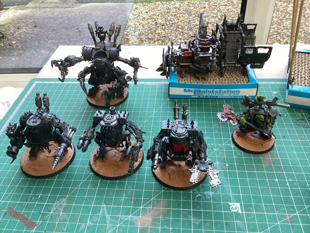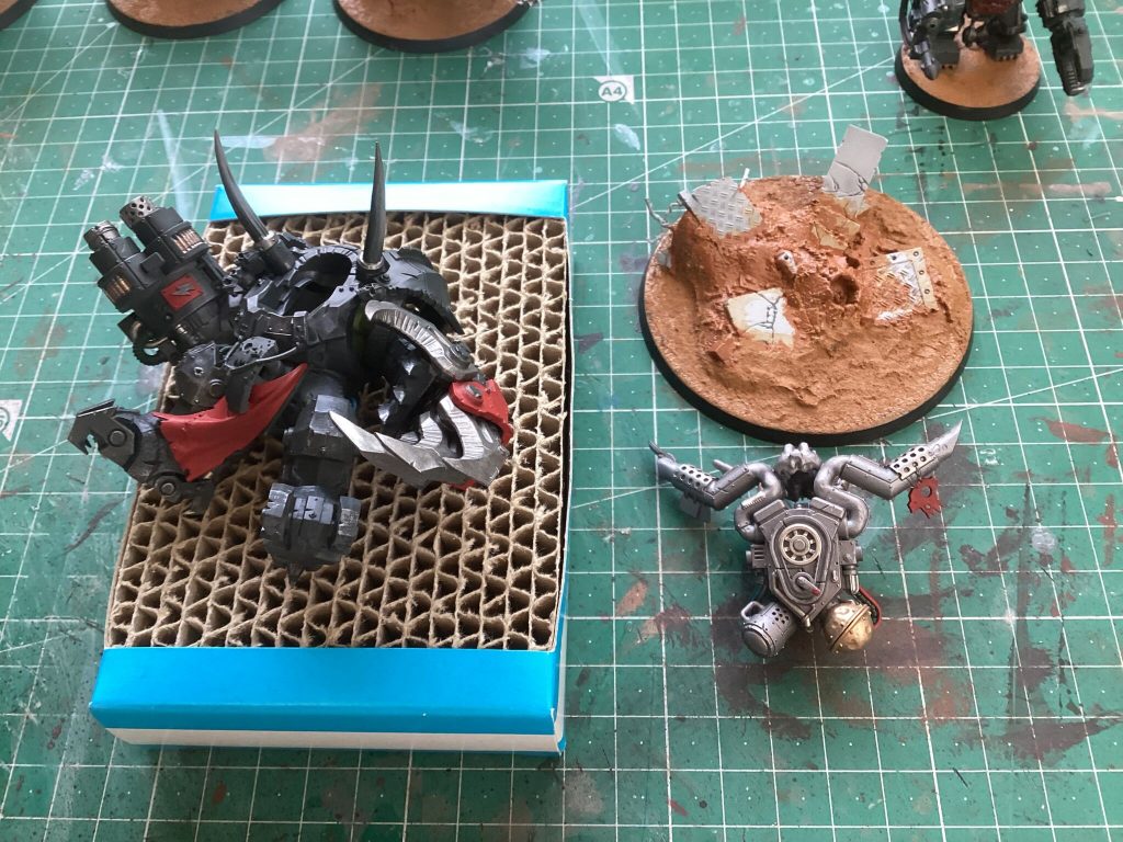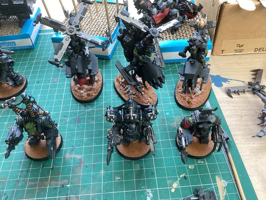 Broke a set of blades off a Deffkopta, but pinning will fix it! Cut off the banner from the Warboss in Mega Armour, to better access the Grot on his shoulders (again, pinning), and Ghaz is still in sub-assemblies